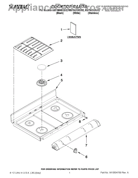 Parts for Maytag MGT8655XS02: 01 - Cooktop Parts
