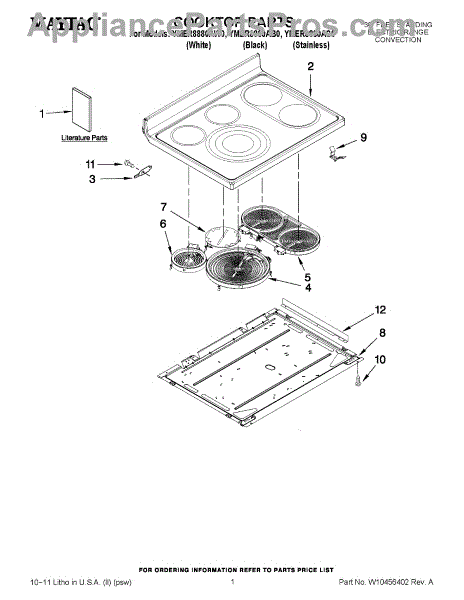 Parts for Maytag YMER8880AW0: 01 - Cooktop Parts