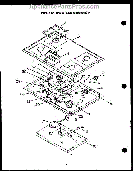 Parts for Modern Maid PGT-151UWW: Cooktop Parts