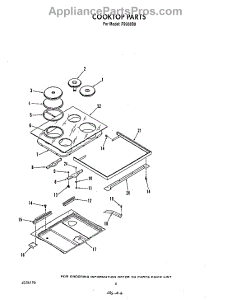 Parts for Roper F9908B0: 04 - Cooktop Parts