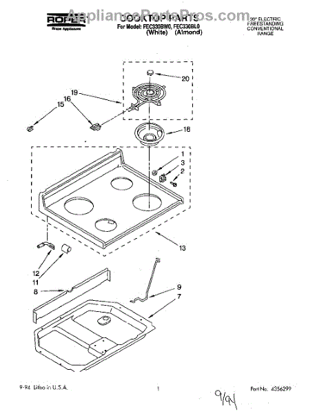 Parts for Roper FEC330BW0: 01 - Cooktop Parts