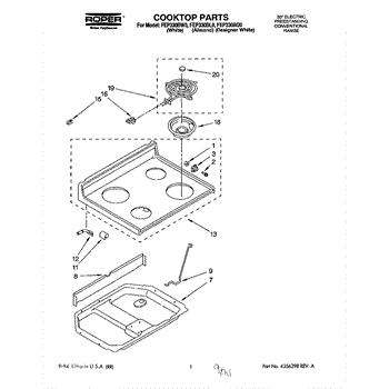 Parts for Roper FEP330BW0: 01 - Cooktop Parts