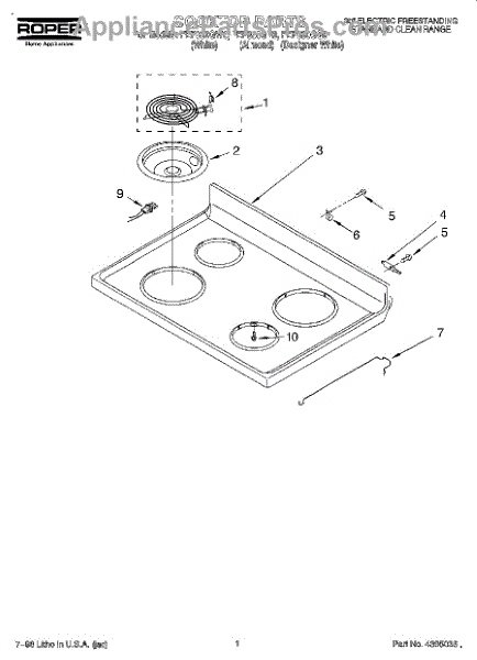 Parts for Roper FEP330GN0: 01 - Cooktop Parts