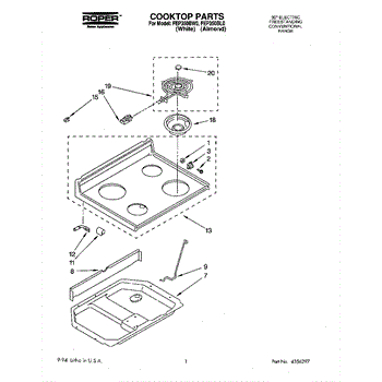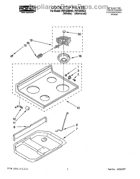 Parts for Roper FEP350BW0: 01 - Cooktop Parts