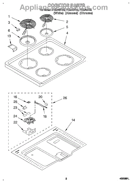 Parts for Roper FES340VW0: 02 - Cooktop Parts