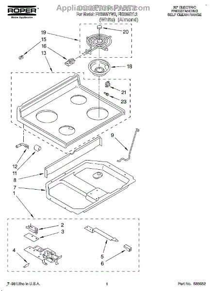 Parts for Roper FES355YW2: 01 - Cooktop Parts