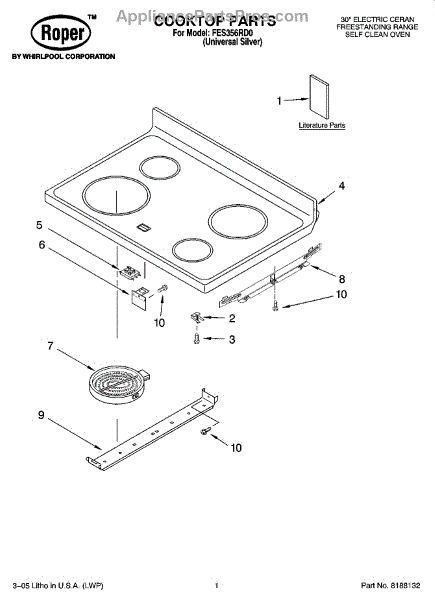 Parts for Roper FES356RD0: 01 - Cooktop Parts