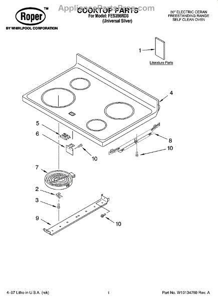 Parts for Roper FES356RD3: 01 - Cooktop Parts