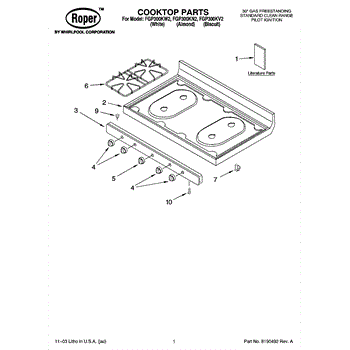 Parts for Roper FGP300KV2: 01 - Cooktop Parts