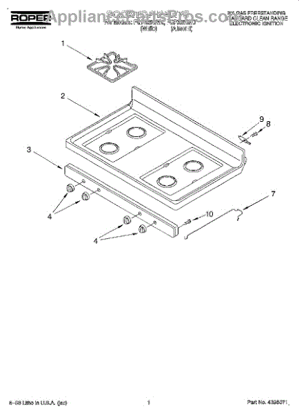 Parts for Roper FGP325GW0: 01 - Cooktop Parts