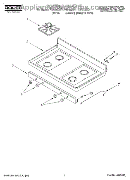 Parts for Roper FGP335GQ1: 01 - Cooktop Parts