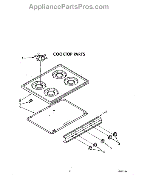 Parts for Roper FGP335VW1: 03 - Cooktop Parts