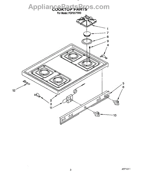 Parts for Roper FGP357YW0: 03 - Cooktop Parts
