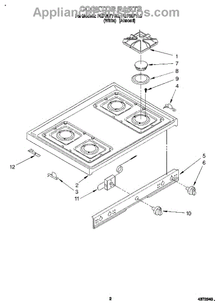 Parts for Roper FGP357YW3: 02 - Cooktop Parts