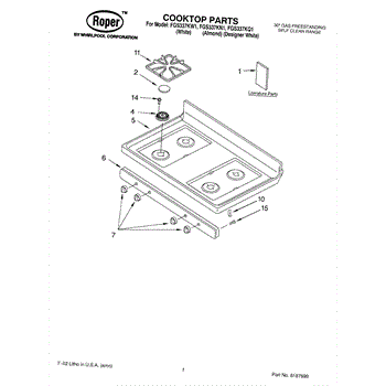 Parts for Roper FGS337KQ1: 01 - Cooktop, Literature Parts