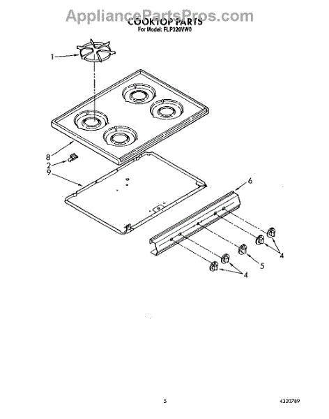 Parts for Roper FLP320VW0: 04 - Cooktop Parts
