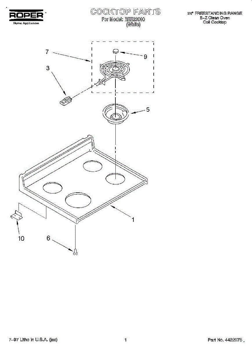 Shallow metal pan that sits below burner elements to catch grease and food spills. Replace when cracked, rusted, discolored, or warped for easier cleanup.