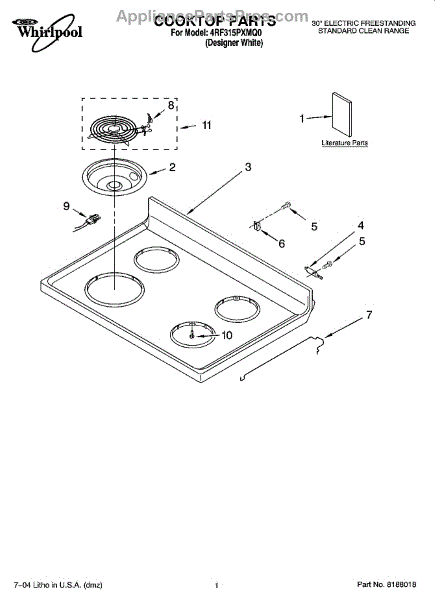 Parts for Whirlpool 4RF315PXMQ0: 01 - Cooktop Parts