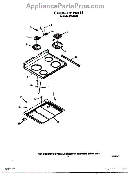 Parts for Whirlpool F7908L0: 03 - Cooktop Parts
