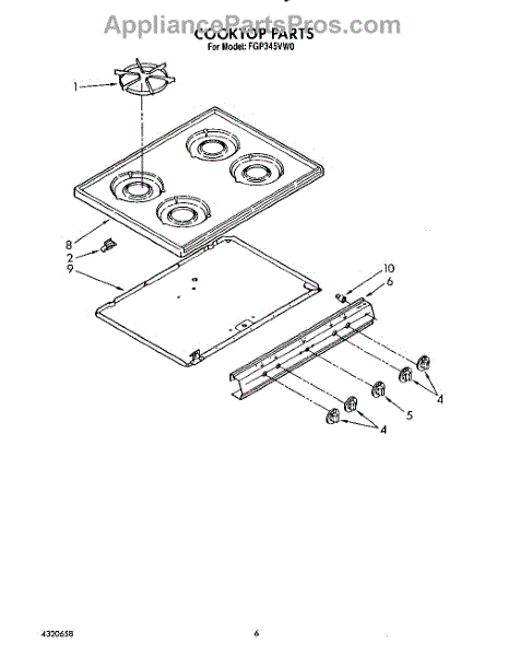 Parts for Whirlpool FGP345VL0: 04 - Cooktop Parts