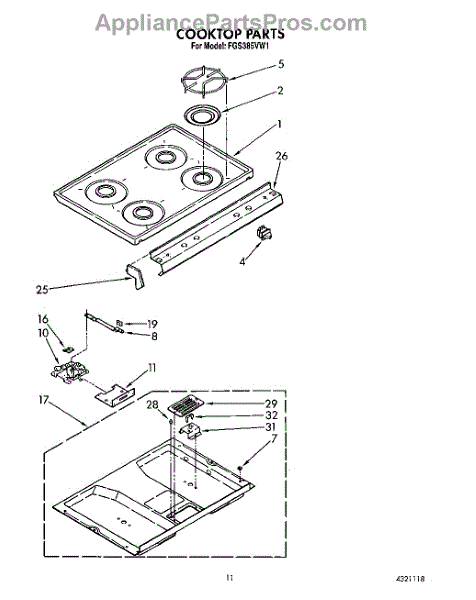 Parts for Whirlpool FGS385VL1: 08 - Cooktop Parts
