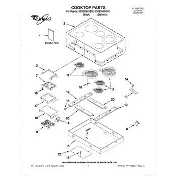 The Cooktop is an OEM replacement part for Whirlpool cooktops. It acts as the durable and heat-resistant platform where you place your pots, pans, and cookware for cooking. This assembly includes the glass panel itself, which provides the cooking surface for the range, and other elements such as the metal frame or trim that surrounds the glass.