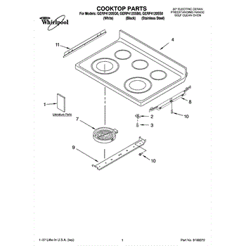 Parts for Whirlpool GERP4120SB0: 01 - Cooktop Parts