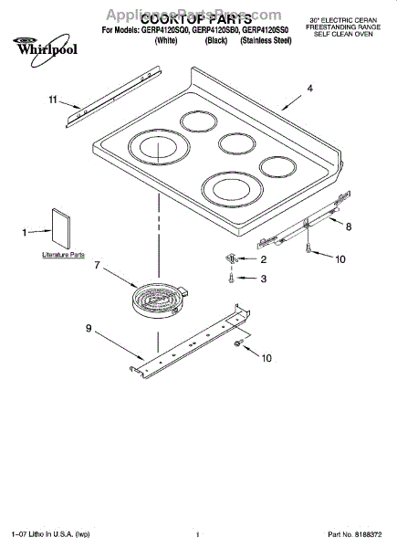 Parts for Whirlpool GERP4120SQ0: 01 - Cooktop Parts