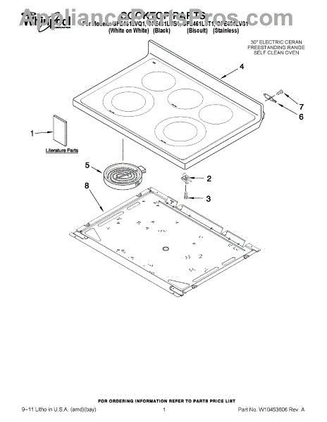 Parts for Whirlpool GFE461LVQ1: 01 - Cooktop Parts
