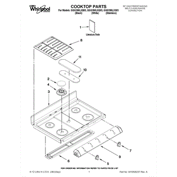 Parts for Whirlpool GGG390LXS03: 01 - Cooktop Parts