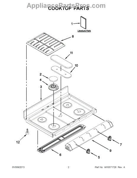 This burner head mounts on the cooktop and distributes gas evenly to produce a steady flame. Replacing a worn or damaged head restores proper flame pattern and helps your burner light quickly and cook consistently.