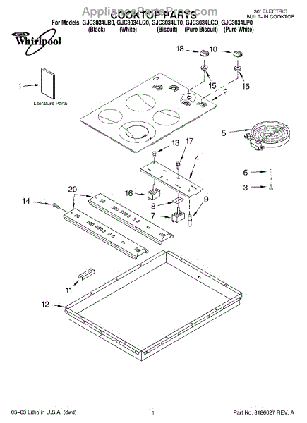 Color: White. For biscuit use WP8522567, for black use WP8522566.