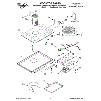 Parts for Whirlpool GJD3044LC01: 01 - Cooktop Parts