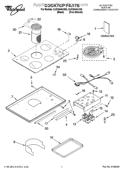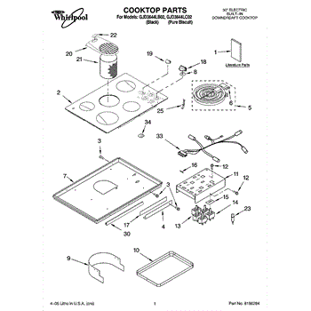 Parts for Whirlpool GJD3644LC02: 01 - Cooktop Parts