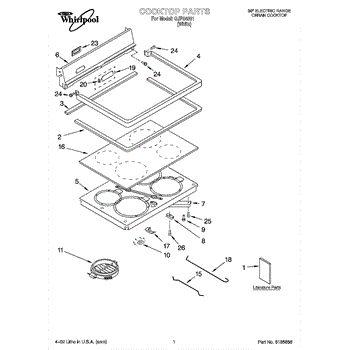 Parts for Whirlpool GJP84801: 01 - Cooktop Parts