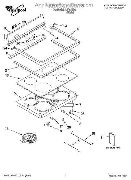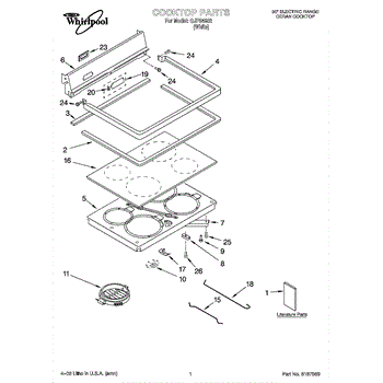 Parts for Whirlpool GJP84802: 01 - Cooktop Parts