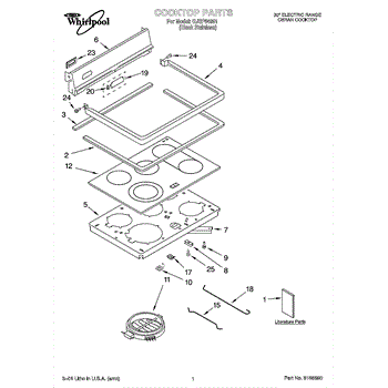 The Small Surface Element is an OEM part for Whirlpool electric ranges and cooktops. This heating element is responsible for providing heat to a specific area on the cooktop, typically used for smaller pots and pans. It ensures even and efficient heating, allowing for precise cooking control.