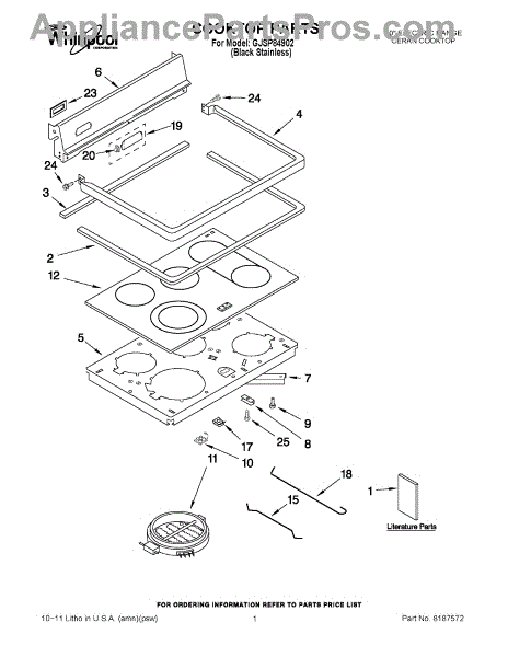 Parts for Whirlpool GJSP84902: 01 - Cooktop Parts