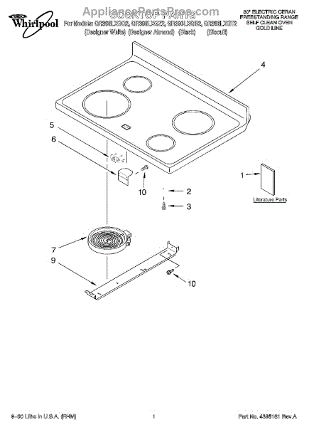 Parts for Whirlpool GR396LXGZ2: 01 - Cooktop, Literature Parts