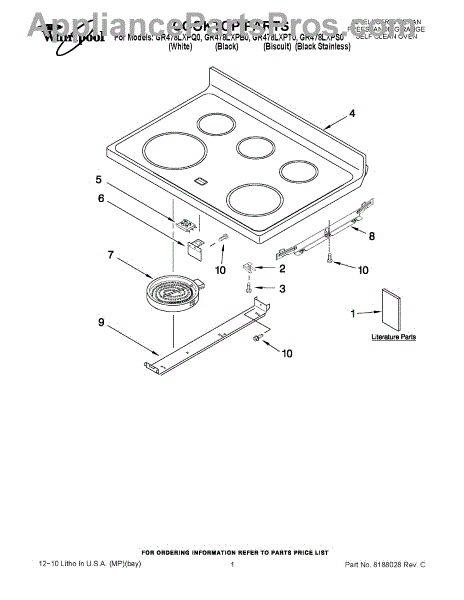 Parts for Whirlpool GR478LXPQ0: 01 - Cooktop Parts