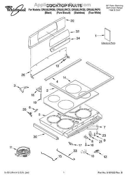 Parts for Whirlpool GR556LRKB0: 01 - Cooktop Parts
