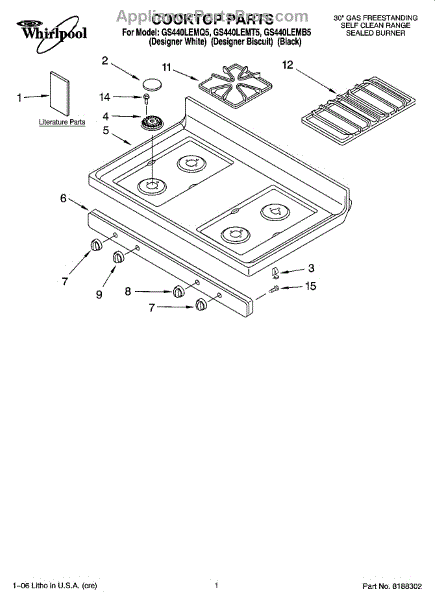 Parts for Whirlpool GS440LEMB5: 01 - Cooktop Parts