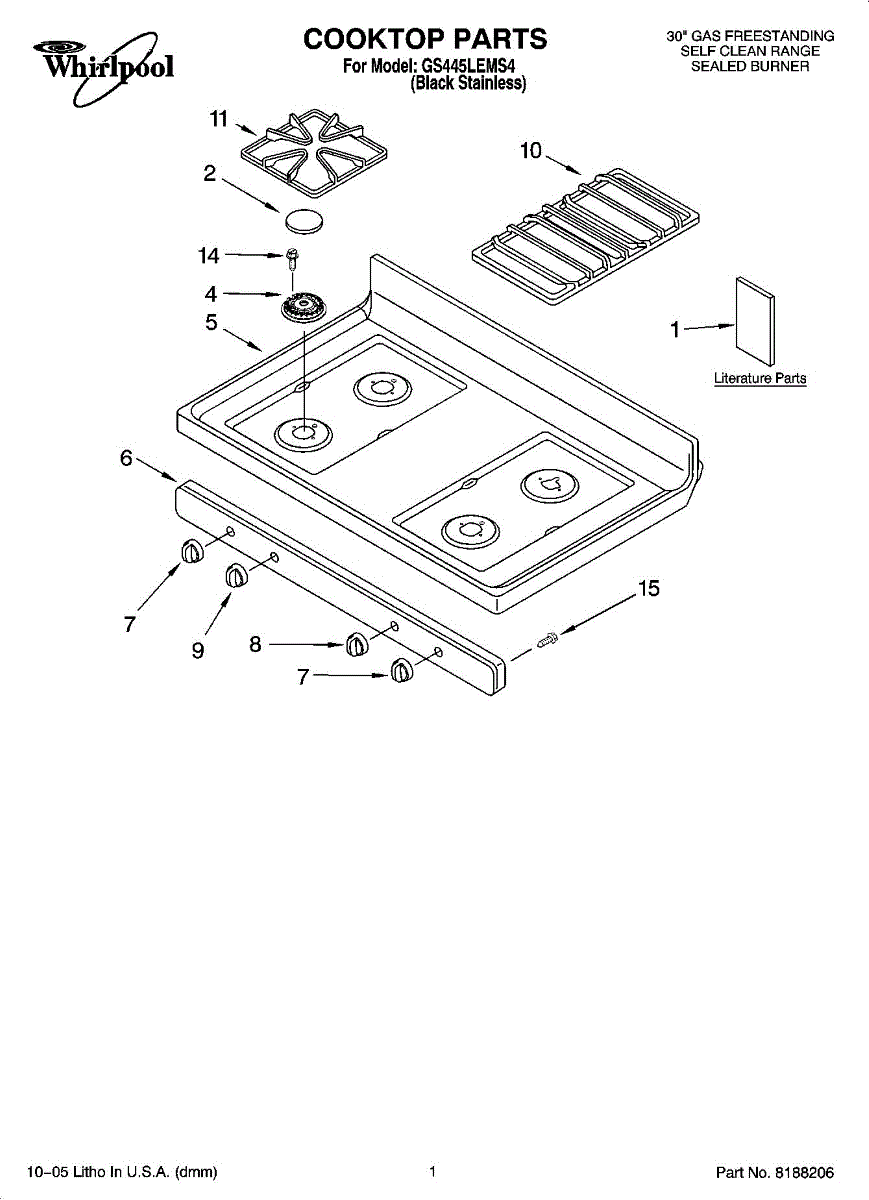 Parts for Whirlpool GS445LEMS4: 01 - Cooktop Parts