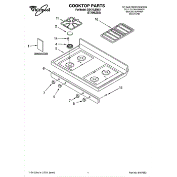 Parts for Whirlpool GS475LEMS1: 01 - Cooktop Parts