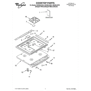 Parts for Whirlpool GW395LEGB4: 01 - Cooktop, Literature Parts