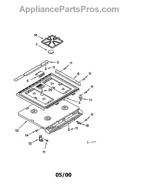 Parts for Whirlpool GW395LEGQ2: Cooktop Parts