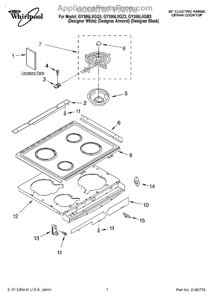 Parts for Whirlpool GY395LXGZ3: 01 - Cooktop, Literature Parts