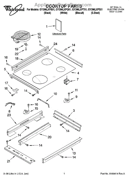 Parts for Whirlpool GY396LXPB01: 01 - Cooktop Parts