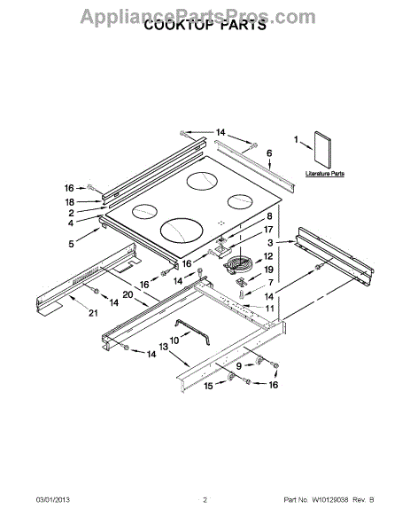 This cooktop top assembly replaces a damaged or worn cook surface to restore a safe, stable area for your cooktop burners and pans. It provides a finished surface and helps maintain proper burner alignment and sealing. What it does