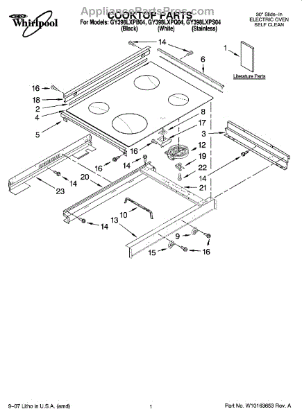 Parts for Whirlpool GY398LXPB04: 01 - Cooktop Parts